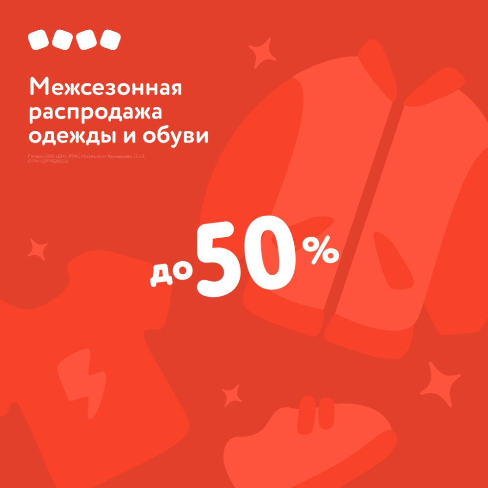 Межсезонная распродажа одежды и обуви до 50%